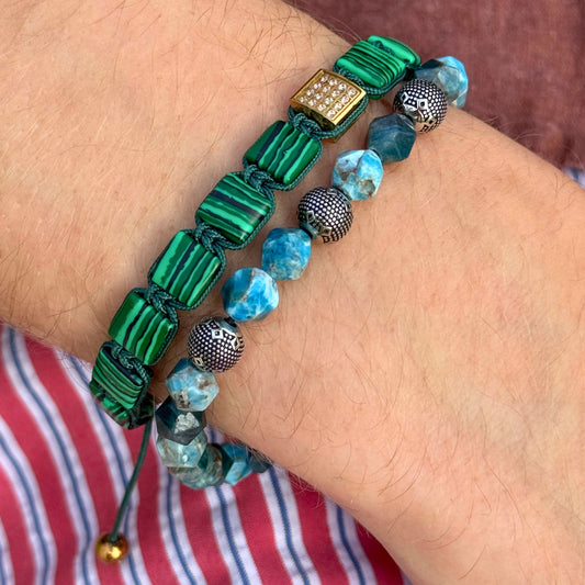 Royal Bleu - Bracelet with Vibrant Blue Beads, Matte Lava Stones and CZ Diamond