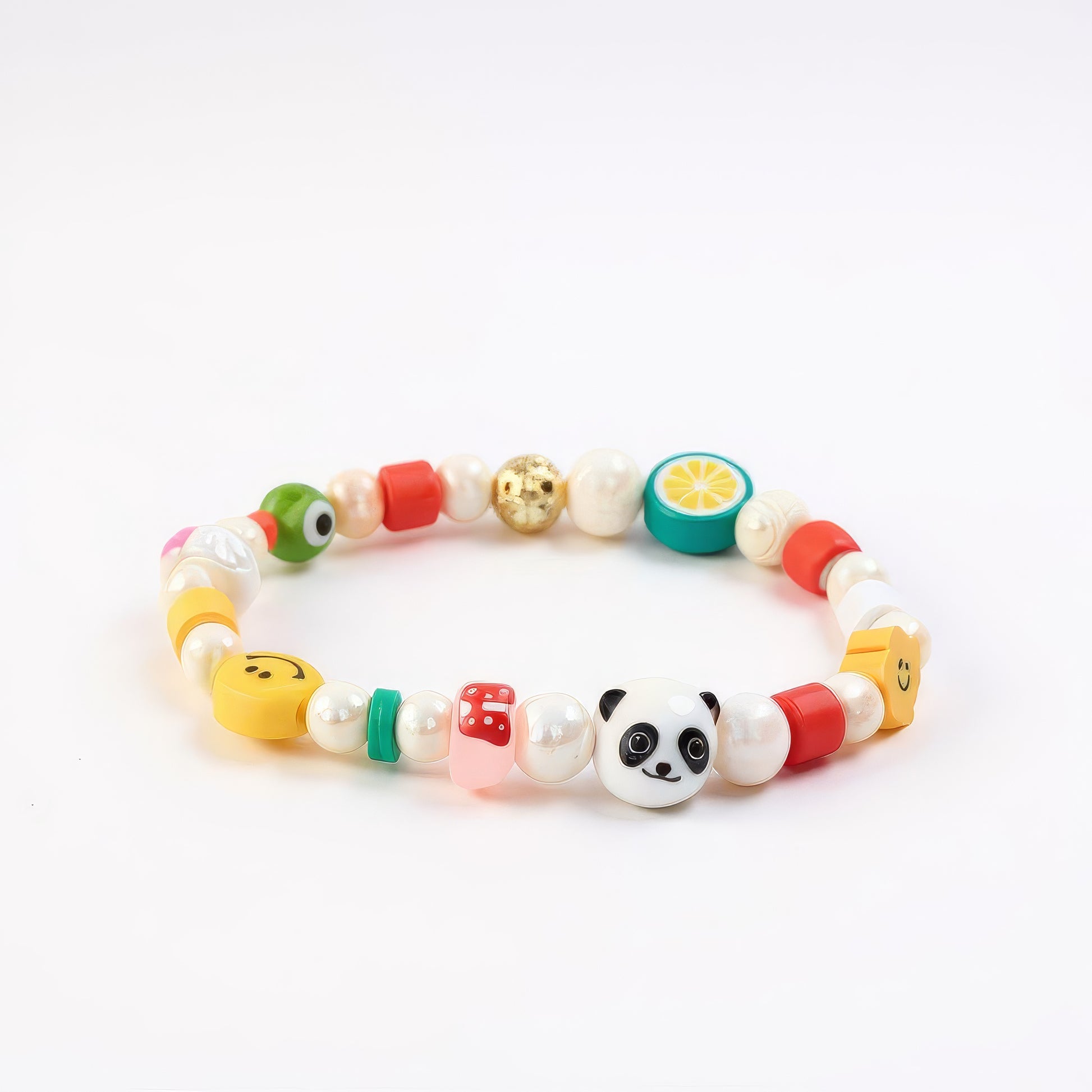 The Soleil bracelet is a celebration of joy and sophistication. Featuring glistening cultured pearls paired with playful accents like smiley faces, fruit charms, and a panda head, this bracelet adds a unique and cheerful touch to any outfit.